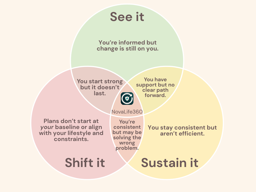 Your health isn’t just genetics or luck. It’s built: habit by habit, day by day. NovaLife360 gives you a personalized system to increase energy, lower stress, and take back your day.